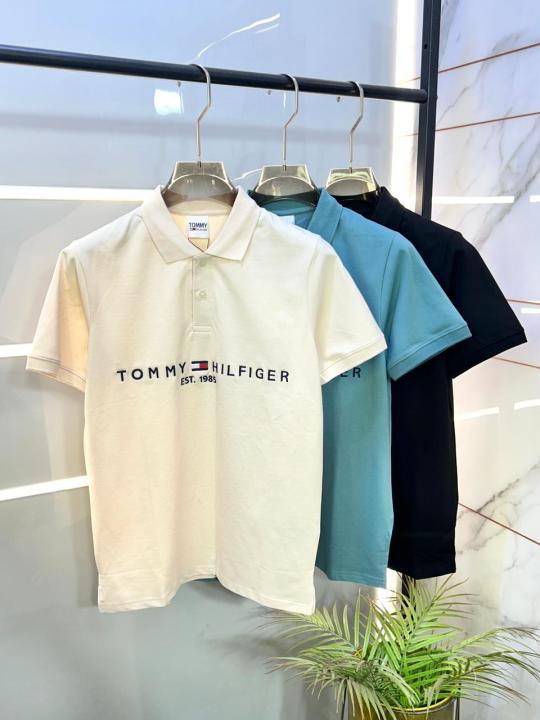 Home T-Shirts Tommy_Hilfiger Black Polo Premium Collar Neck T-shirt F2630-BL